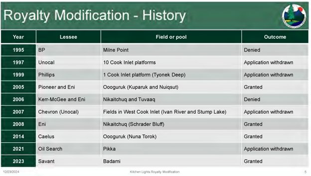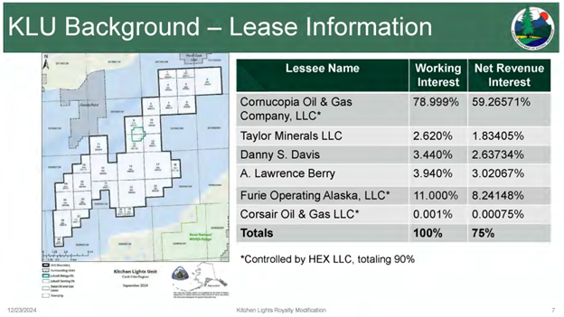 The royalty structure at KLU reflects decades of standard State of Alaska leasing practices layered with private contractual interests that the State of Alaska approved. All leases, issued between 2000 and 2007, carry the state’s standard 12.5% royalty as lessor. No modifications occurred until the 2025 determination. Overriding royalty interests (ORRIs) add another fixed 12.5% burden, carved exclusively from the working interest owners’ share and free of operating costs.