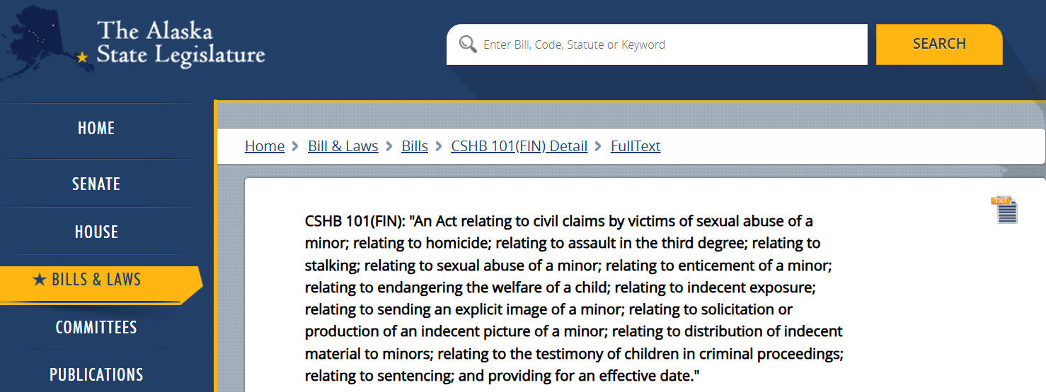 Perhaps one of the best examples of a truly non-partisan bill, House Bill 101 amends Alaska criminal law to raise the age of consent from 16 years old to 18 years old.