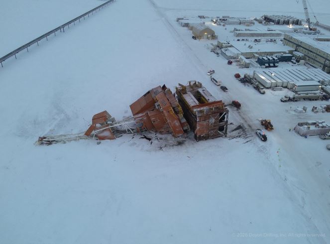 The outage—limited to the derrick subbase, allowing potential modular rebuild—could delay projects like Willow, but Conoco has pivoted to Doyon 142 for exploration. By comparison to another massive ERD land rig, Russia’s Sakhalin-1 Yastreb rig, a 230-foot seismic-resistant giant with 1.5 million-pound capacity and world-record ERD of over 37,000 feet horizontal, Doyon 26 showcases transportability over scale. The modular design between the Doyon 26 and Doyon 142 provides a distinct advantage to enable a quicker turnaround to resume development drilling.