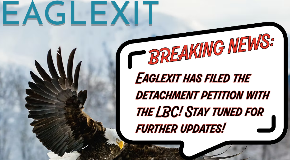 Under the heading “Restoring Local Power and Fiscal Accountability”, the press release describes the mission of Eaglexit as ensuring local voice and control over its future, and that tax revenues are used to support the needs of those taxed.
