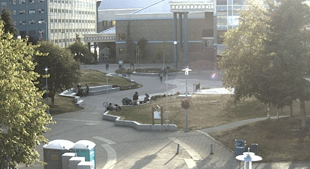 The new tent encampment is between Starbucks and the Legislative Information Offices in the Wells Fargo Bank building.