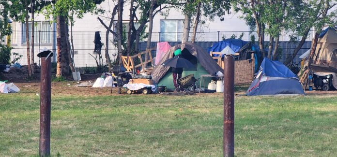 When tourists arrive in Anchorage and check into one of the downtown hotels, they’re often greeted with two starkly contrasting views. On a clear day, they might catch a glimpse of majestic Mt. McKinley on the horizon. But every day this summer, without fail, what greets them closer to ground level is another sprawling homeless encampment, just steps from where the Saturday Market sets up and directly beneath the Ramada by Wyndham.